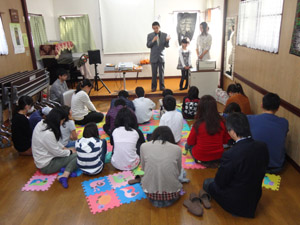 クリスチャンライフの教会学校でみかむきに関連してメッセージを語る