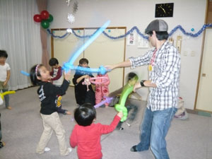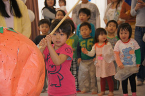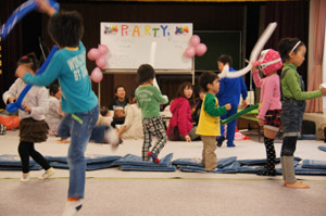ピニャータが割れた後は子供達が中身のお菓子やおもちゃを拾うために殺到します。