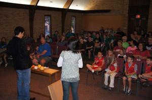 ネブラスカ州Omahaの教会で子供達にみかむき実演と神様についてのお話。