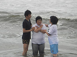 九十九里浜での茂原クリスチャングループの洗礼式