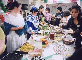 恒例のロマンチック・シリーズの集会です。 今回は独身者ぬきだったので 「へーそうだったんですか 出会いのきっかけは、ご主人にナンパされたの?」 w(゜o゜)w 「何々?当時未信者だった彼は、彼女のダサい水着を見てクリスチャン女性像につまずきそうになったので、彼のいやしの為に新婚旅行でハイレグの水着を買ったって?」 (*^O^*) 、、などといった、ちょっと内密な会話で盛り上がりました。でもどうしてこんなに笑えるんでしょうねー。(・・;) 関西人が多いからかもしれませんねー。 ( ^^)/\(^^ )