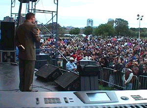 「押し寄せるような見渡す人の海を前に彼は立っていた。5万4千人の群集が主をたたえるために集まっていた、手を挙げて賛美している、人々の頬は涙でぬれていた。」これは昨年11月、チリにおける賛美集会のことです。マルコスの賛美集会に参加するために人々が何時間も待つ事は、しばしば見られる事です。時には満席で立ち見席すらないほどです。