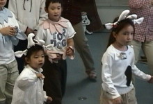 The girld were dressed as cows and the boys as chickens. Ain't the cute?
