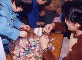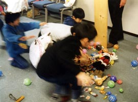 お菓子に殺到する子供達
