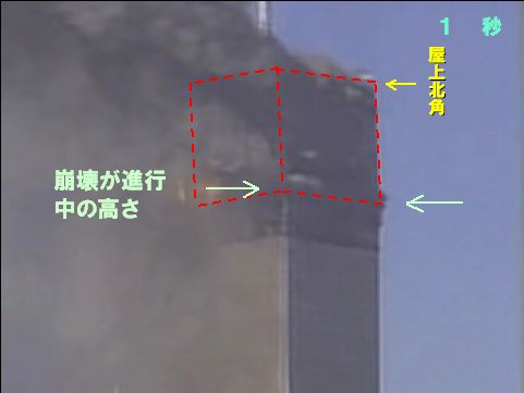 アンテナが左(南側)に傾き上層階の最上部自体も南側に移動していくのだが、他のビデオで確認しても北側と南側で以後の崩壊の様子に差異は見られない 。