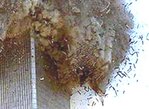 でも明らかに確認できる現象である。小さく見えるが差し渡しは10mほどもあるつぶされた鋼材の集まりである。