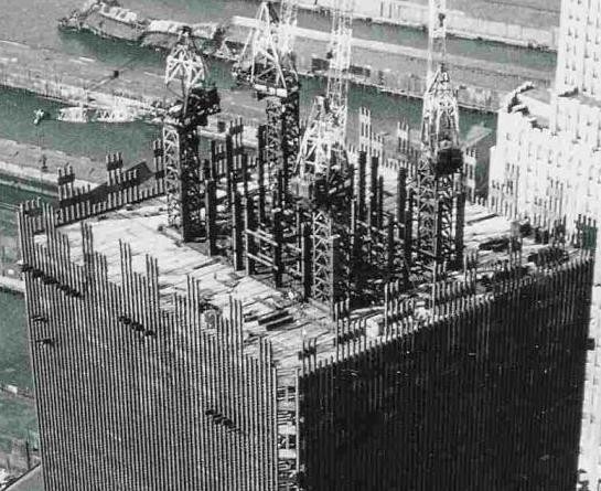 コアの構造といっても、詳しく知らない人にとっては何のことか分からないだろう。ここで、ツインタワー建設時の写真をお目にかける。その過程を極めて簡単に見てみよう。