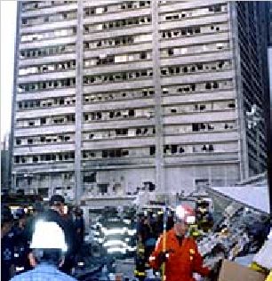 第2ビルから160m離れたリバティプラザ1ビルは10階以上の部分までボロボロにされていた。