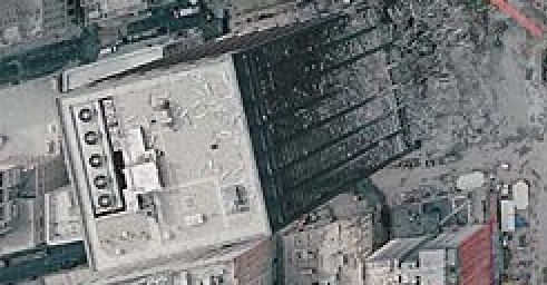次の写真は第2ビルから80mほど南にあった旧ドイツ銀行ビルの屋上(地上171m) を写した衛星写真 である。