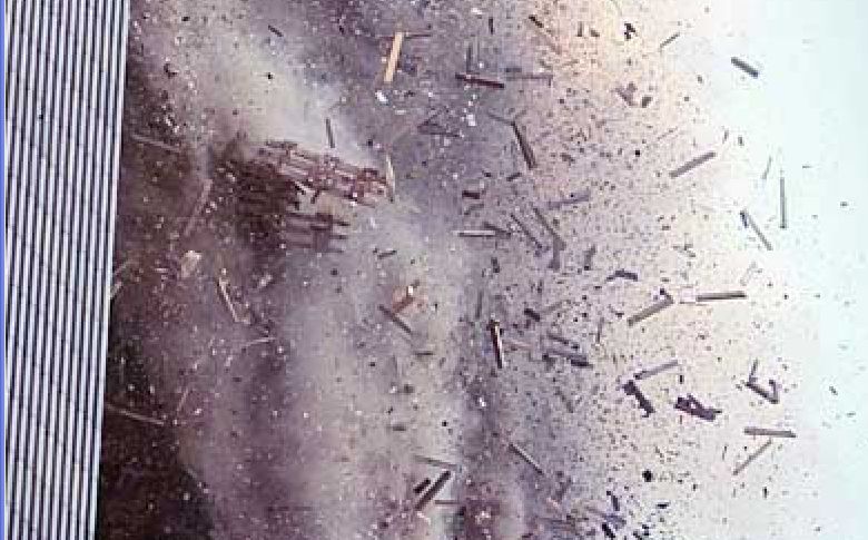 次の写真は第2ビルから北西側に飛ばされる大量の建材である。撮影者はBill
