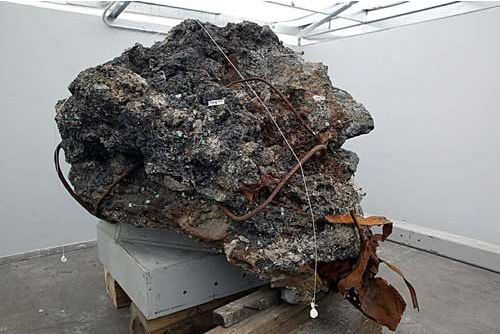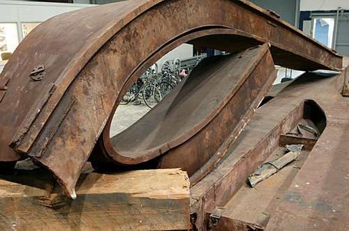 これもあの奇妙な物体の一部。多くの鋼材が何かで固められているようだ。