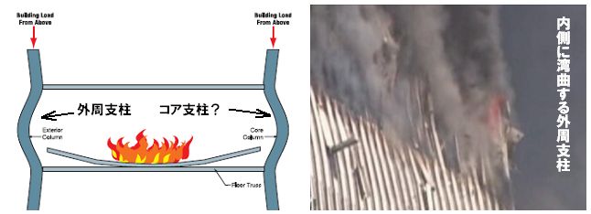 ツインタワーは、飛行機激突の衝撃と火災の熱と重力で