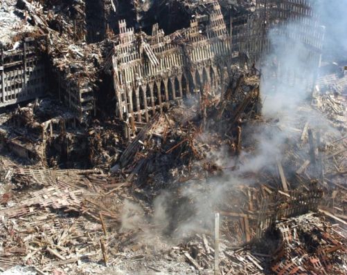 ですから、通常ビルが崩壊したら山ほどの残骸がその場に残るはずなのに、その跡地には風邪に飛ばされなかった鉄骨しか残されていないのです。